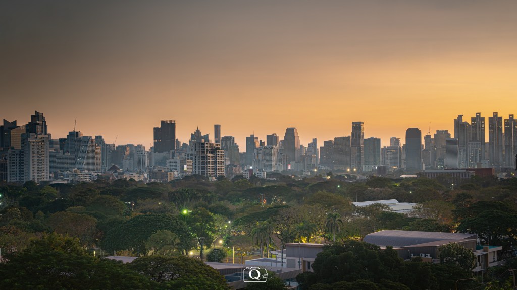 - Lights from Lumphini Park and One Bangkok are still on